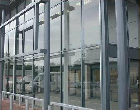 中空玻璃安裝玻璃幕墻特點:中空玻璃的最大優(yōu)點是節(jié)能與環(huán)保,現(xiàn)代建筑能耗主要是空調(diào)和照明,前者占55%,后者占23%,玻璃是建筑外墻中最薄、最易傳熱的材料。中空玻璃由于鋁框內(nèi)的干燥劑通過框上面縫隙使玻璃空腔內(nèi)空氣長期保持干燥,所以隔溫性能極好。