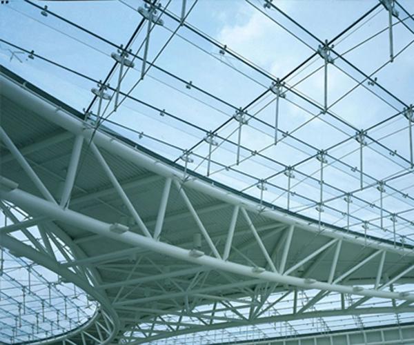 2、群體玻璃采光頂:是在一個屋頂系統(tǒng)上,由若干單體玻璃采光頂在結(jié)構(gòu)件支承體系上組合成一個玻璃采光頂?shù)娜后w,其形式可隨意變化。